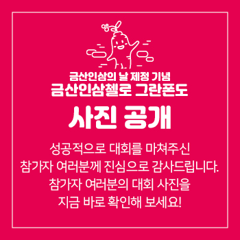 ① 금산인삼의 날 제정 기념 금산인삼첼로그란폰도과 관련된 참가자의 사진, 기록 등의 수집 및 이용 등에 관한 사항은 개인정보의 수집 및 이용 동의에 정한 바에 따릅니다.